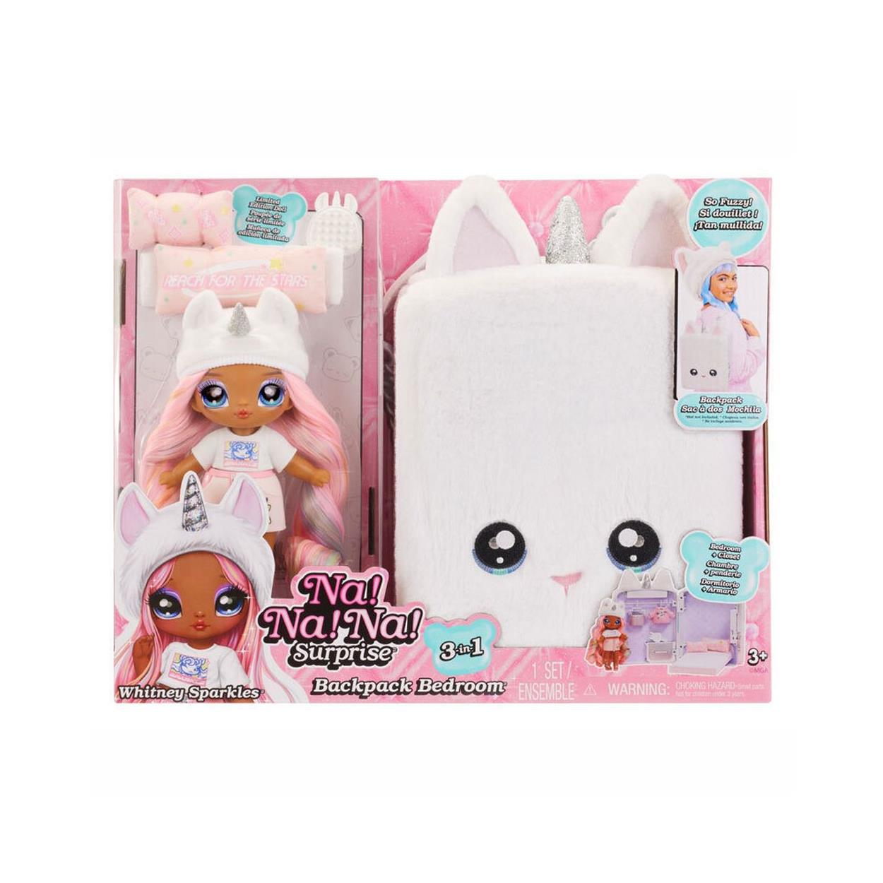 | Box Contents | 1 Backpack, 1 Doll, 1 Beanie, 1 Outfit, 1 Pair of Shoes, 1 Brush, 1 Bed, 2 Pillows, 1 Blanket, 3 Hangers, 1 Doll Stand |